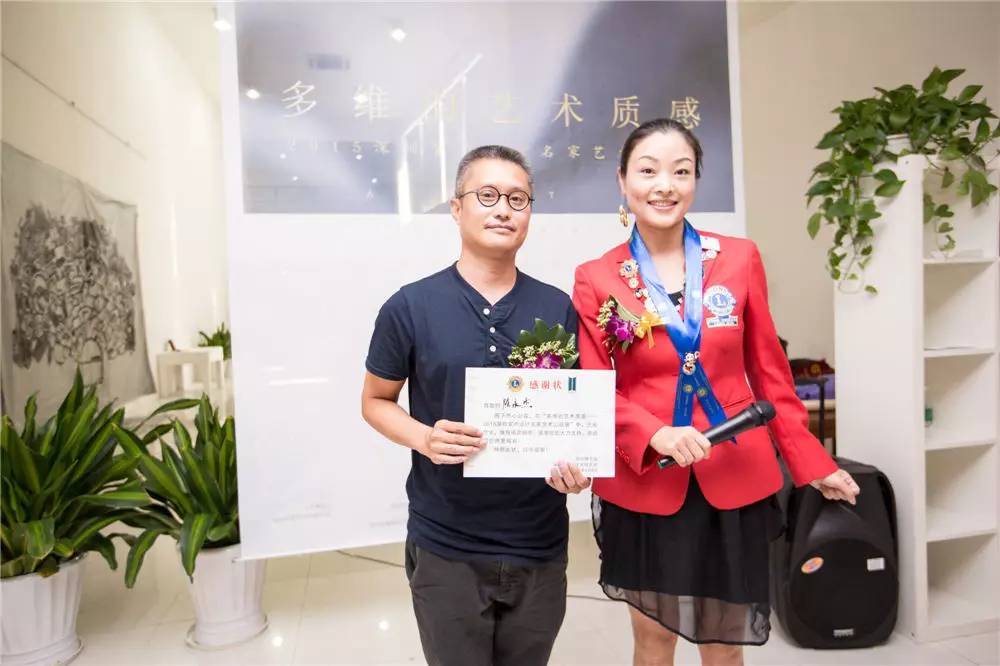 8月8日下午两点,多维的艺术质感—2015深圳室内设计名家艺术公益展在深圳雅昌艺术馆隆重开幕。深圳元本室内建筑有限公司公司的创意总监、深圳狮子会精英服务队队长曹丽霞女士率先垂范,宣布购买著名设计师陈永杰先生的一幅画作,向狮子会捐赠人民币一万元,获得了全场热烈的掌声和认可。